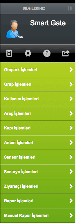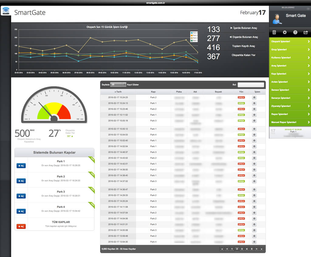Yönetici, personel ve kullanıcılara farklı arayüzler sunan SmartGate yazılımı kolay bir kullanım sunmaktadır.